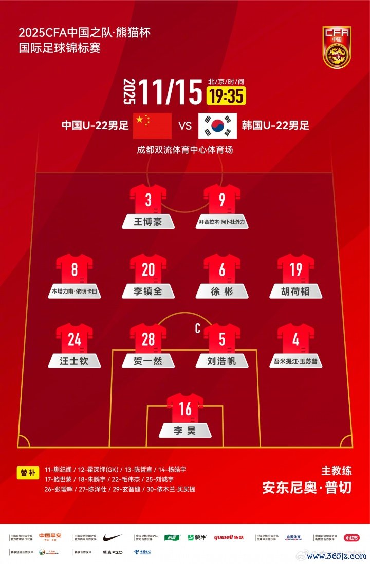 11月15日讯 熊猫杯中国U22vs韩国U22杆位阵形 公布,中国古代足球 队官方账号给出本场杆位阵形 图,苏超在线直播高清视频无插件U22国足采用442阵形 。