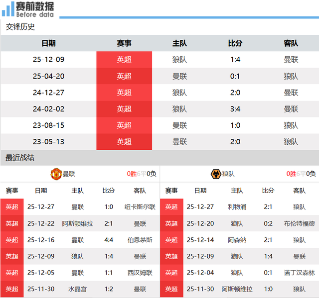 北京时间12月31日凌晨04:15,英超第19轮,曼联主场作战 迎战狼队。