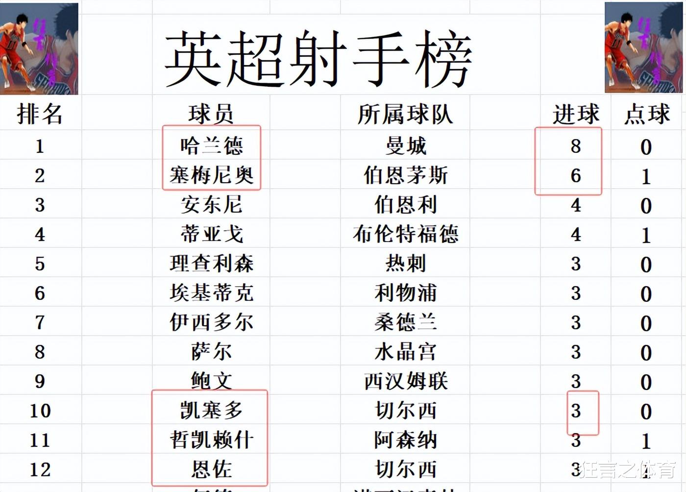 射手榜方面,哈兰德8球领跑在哪里看足球直播好,塞梅尼奥6球位列第2,安东尼和蒂亚戈4球并列第3。凯塞多今天打入一球后,追上恩佐,萨尔,埃基蒂克,理查利森等人3球刚好挤入前十。
