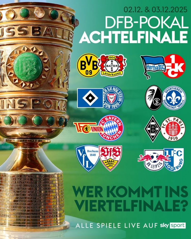 11月3日讯 德国杯1/8总决赛 对阵已经出炉,多特将对阵勒沃库森,苏超在线直播高清视频无插件拜仁交手柏林联合,赛事 将于当地时间12月2日、3日进行。